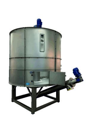CAPACIDAD 3 Tn. VOLUMEN 7,95 m2 DIÁMETRO EXTERNO 2250 mm ALTURA BASE 1000 mm ALTURA TOTAL 3000 mm (+855 mm con motor reductor) CAUDAL EXTRACCIÓN 4000 Kg./h -