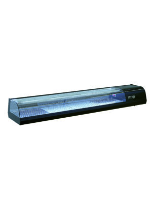 VITRINA SUSHI 180MEDIDAS (L x P x A) 1797 x 387 x 240 CAPACIDAD 15,6 L. NIVELES 1 nivel CAPACIDAD PLATOS 8 platos TEMPERATURA -1ºC/+1ºC -