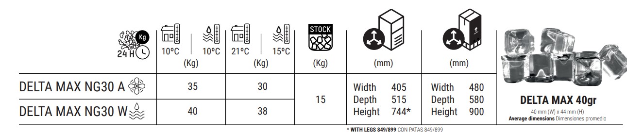 La línea DELTA MAX NG 30 incorpora un nuevo sistema de refrigeración con gas R290, que optimiza el rendimiento de la máquina y presenta un sistema de ventilación frontal IN-OUT que permite la instalación empotrada. Además, gracias a su estructura robusta con 4 columnas independientes, tanto el mantenimiento como la intervención técnica se simplifican considerablemente.