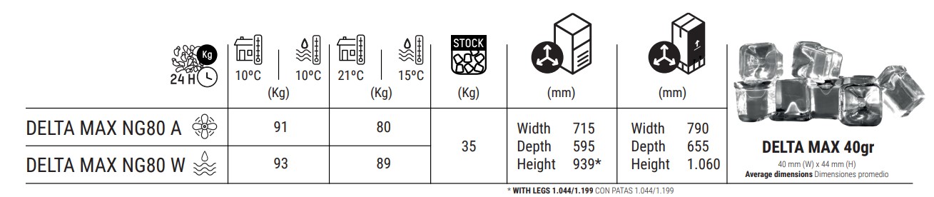 DELTA MAX NG 80 Fabricamos cubitos gourmet sólidos y transparentes. El control electrónico mejora el rendimiento de la máquina y la hace adaptable a condiciones climáticas extremas.
