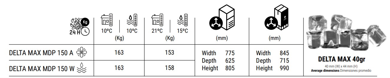 DELTA MDP 150 Elabora cubos gourmet sólidos y cristalinos de hielo.