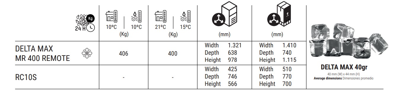 DELTA MR400 REMOTA Produce cubitos gourmet macizos y cristalinos