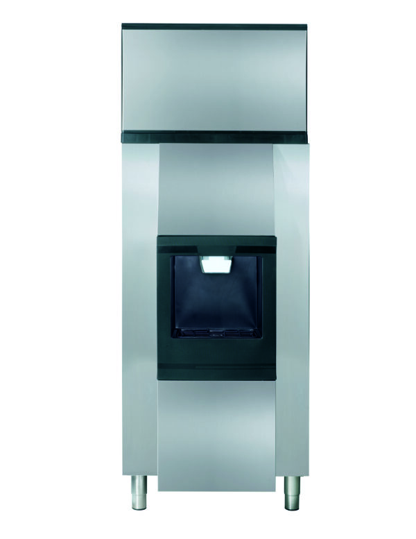 El nuevo Dispensador de hielo de ITV dispensa cubitos de dado y medio dado.