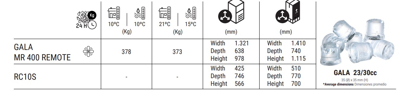 GALA MR400 REMOTA Produce cubitos gourmet macizos y cristalinos