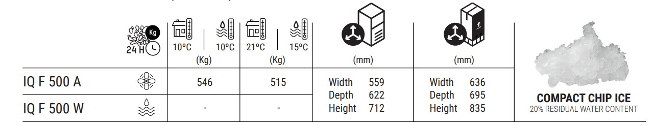 IQF 500 Producen hielo tipo “chip”. Evaporador de alta eficiencia: menor consumo de energía, mayor producción de hielo.