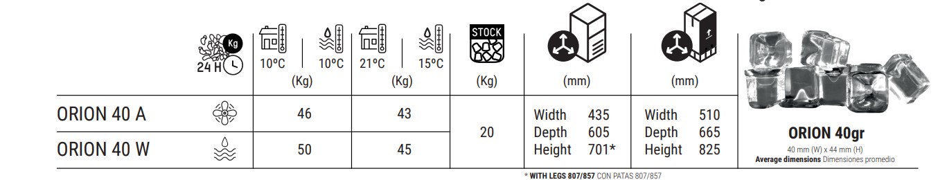 ORION 40 Produce cubitos gourmet macizos y cristalinos