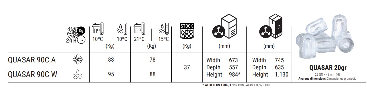 QUASAR 90C diseñadas para la producción de hielo en condiciones desafiantes en términos de la calidad del agua y en ubicaciones menos idóneas, las máquinas QUASAR tienen una vida útil media de 18 años. Su sistema de paletas elimina la necesidad de componentes electrónicos y filtros de agua. Producen cubitos de hielo semihuecos con formas características que se equilibran para garantizar una producción eficiente.