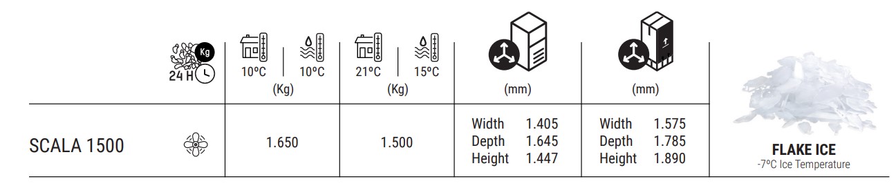 SCALA 1,5T Genera finas escamas de hielo, extremadamente frías y secas, con la posibilidad de ajustar el espesor en un rango de 1.5 a 3 mm.