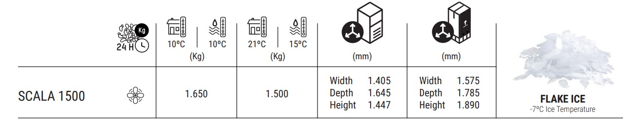 Produce finas láminas de hielo, notablemente frías y secas, con la capacidad de ajustar su espesor en un rango de 1.5 a 3 mm.