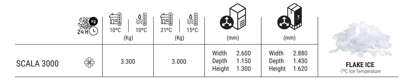 SCALA 3T Produce láminas planas de hielo, extremadamente frías y secas, con la capacidad de ajustar su espesor en un rango de 1.5 a 3 mm.
