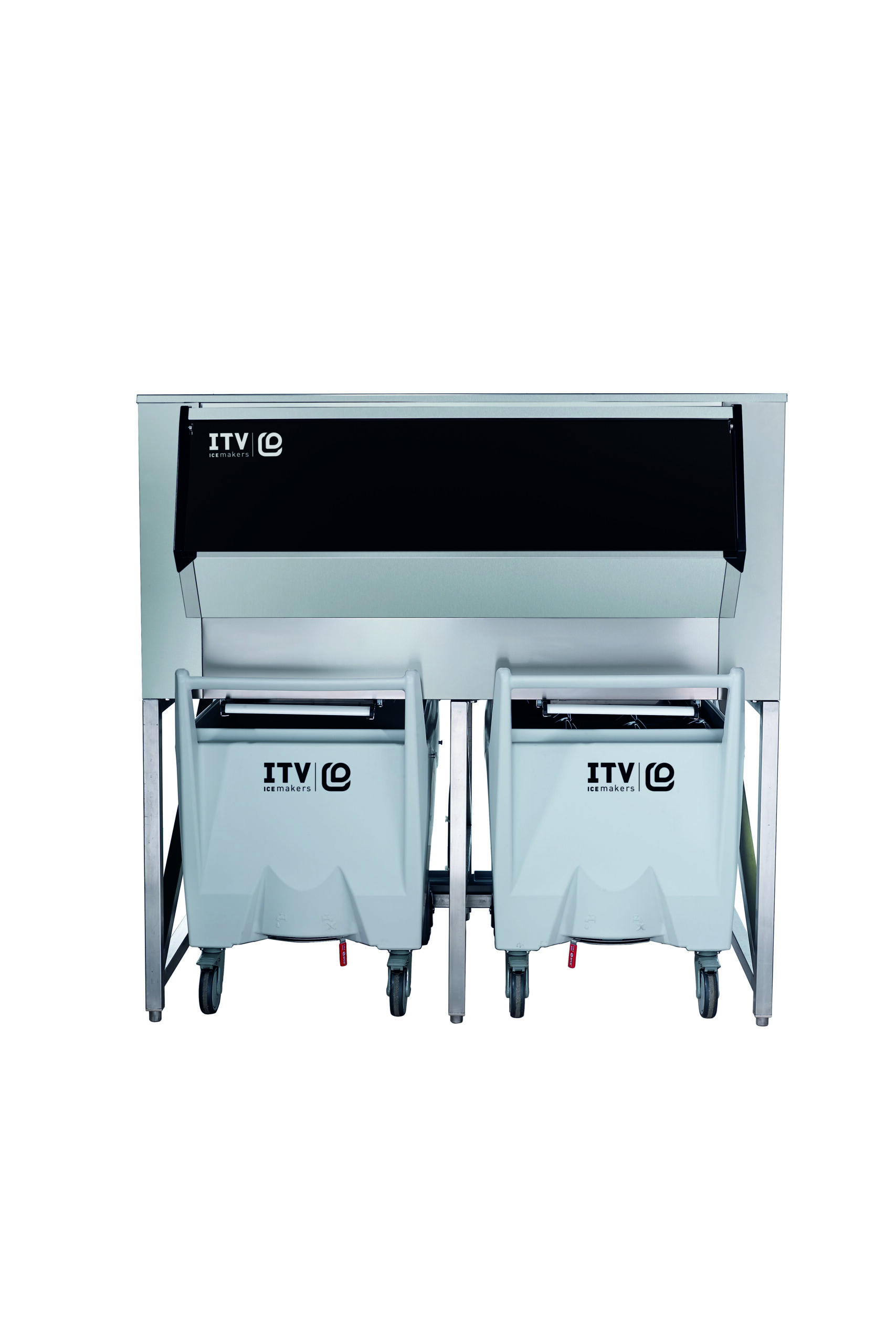 Contamos con una amplia gama de silos diseñados para adaptarse a cualquier máquina de hielo de ITV y satisfacer todas las necesidades. Estos silos simplifican el proceso de extracción de hielo, evitando derrames y permitiendo un transporte tres veces más rápido, lo que se traduce en importantes ahorros de tiempo y trabajo. Algunos silos están equipados con una puerta en la parte inferior que facilita la extracción del hielo más antiguo primero, mejorando la rotación y la calidad del hielo almacenado.