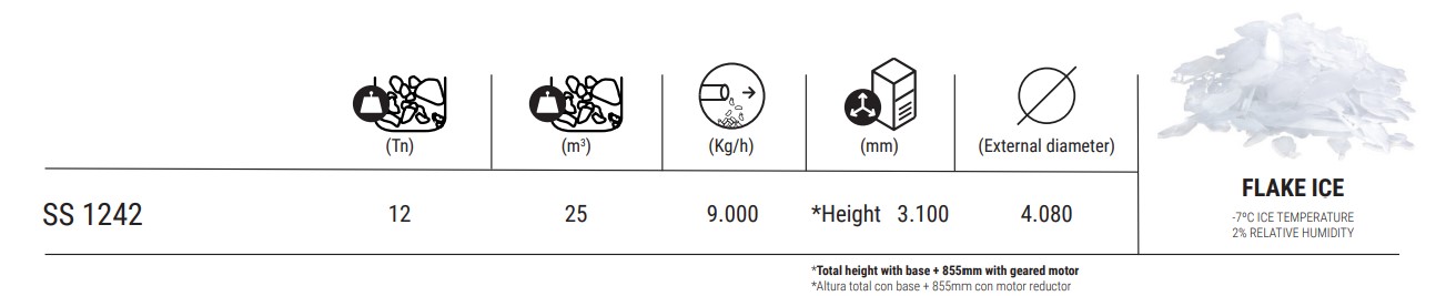 Encuentran aplicación en centros logísticos de pescado fresco, lonjas, puestos de venta y en la industria alimentaria. La extracción del hielo se lleva a cabo mediante un sistema de sinfín que recorre el perímetro del silo.